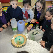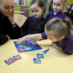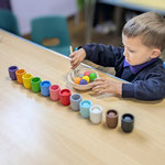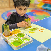 This area of learning covers the broad range of skills needed to develop an understanding of maths. Through stories, songs, games and imaginative play children will be counting, measuring, sorting and solving problems. They will become comfortable with numbers and with ideas such as 'heavier than' or 'bigger' and they will be aware of shape, colour and space.